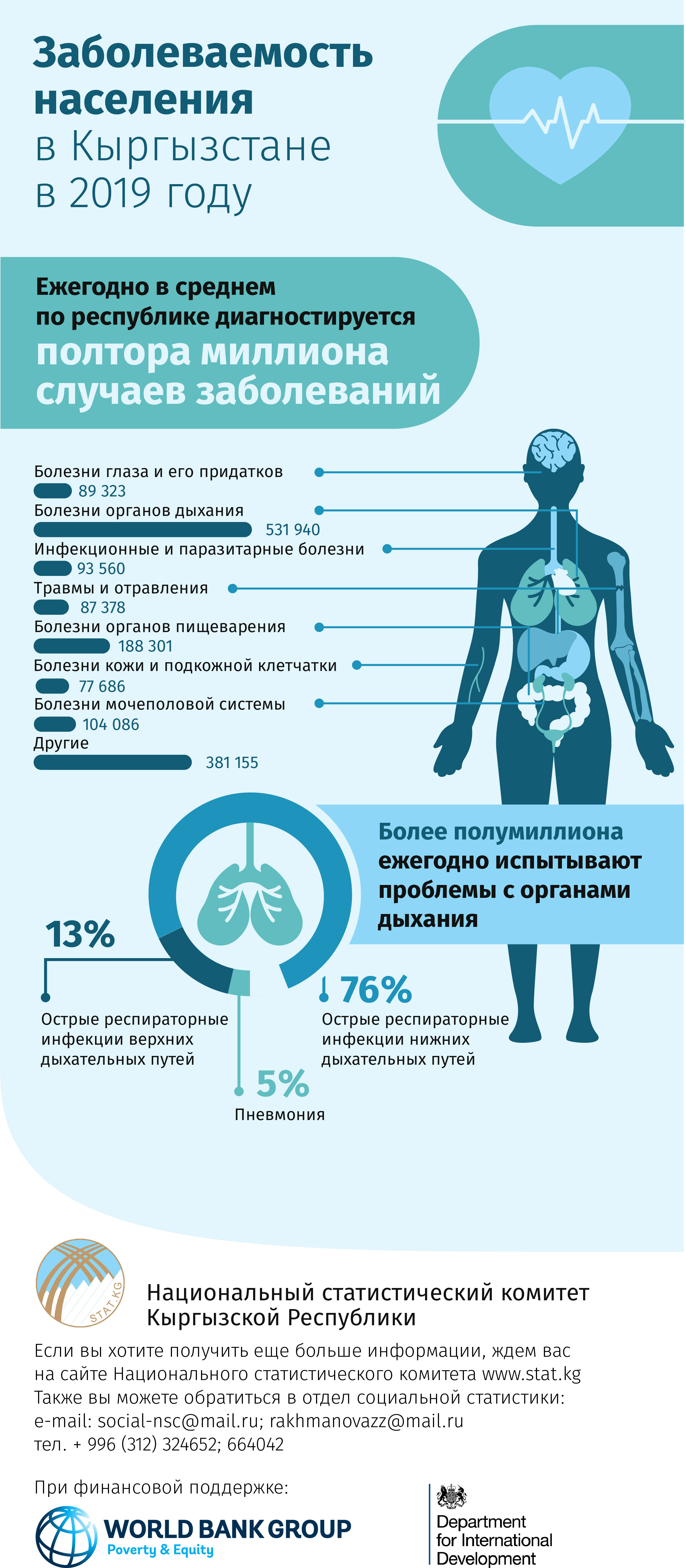 Инфографика: Заболеваемость населения в Кыргызстане в 2019 году